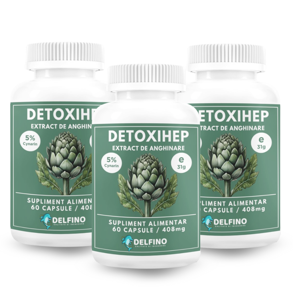 DetoxiHep Delfino® este un supliment alimentar natural care susține sănătatea ficatului și stimulează detoxifierea organismului, având ca ingredient activ extractul concentrat de anghinare.