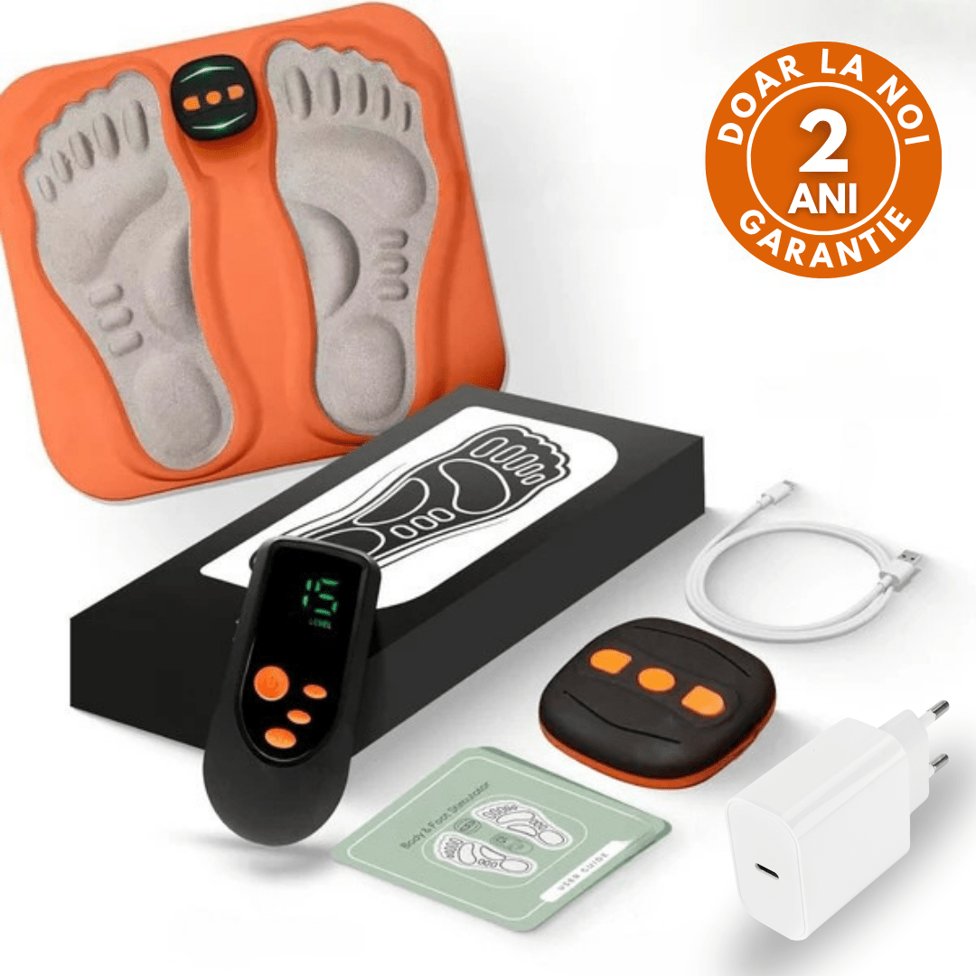 Absolut! Dispozitivul are 8 moduri de masaj și intensități ajustabile pentru confortul tău maxim. Tehnologia NMES este folosită de decenii în clinicile de fizioterapie. Perna ergonomică cu fibre de cupru se adaptează perfect formei picioarelor.