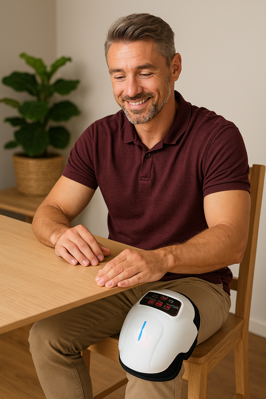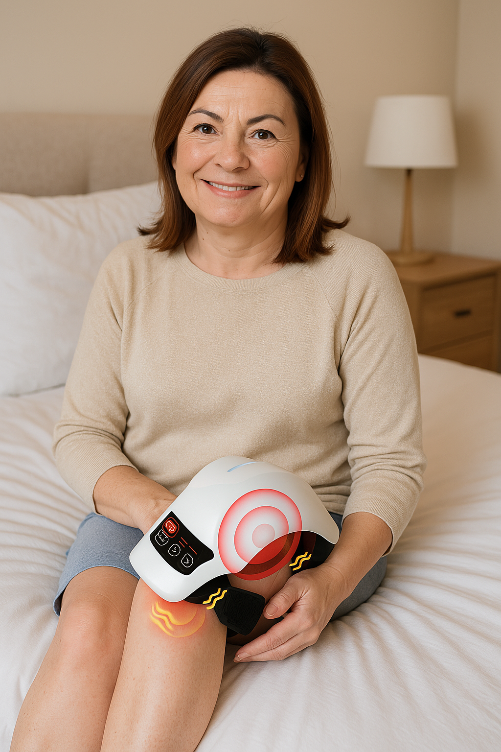 Pune dispozitivul pe genunchi și ajustează intensitatea masajului și temperatura conform preferințelor. Se recomandă două sesiuni zilnice de câte 30 de minute fiecare, pentru rezultate optime.