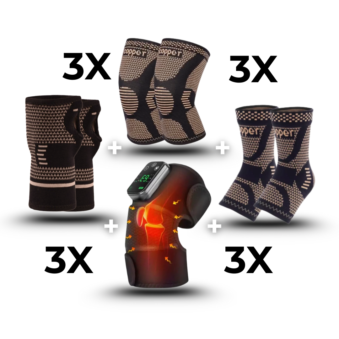Aparat de masaj termic 3-în-1 pentru articulații plus set complet de șosete, mănuși și genunchiere cu fir de cupru.