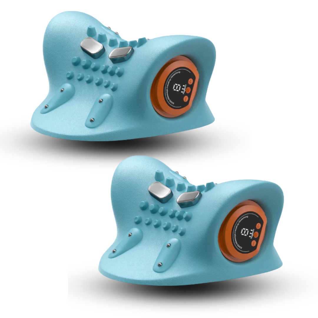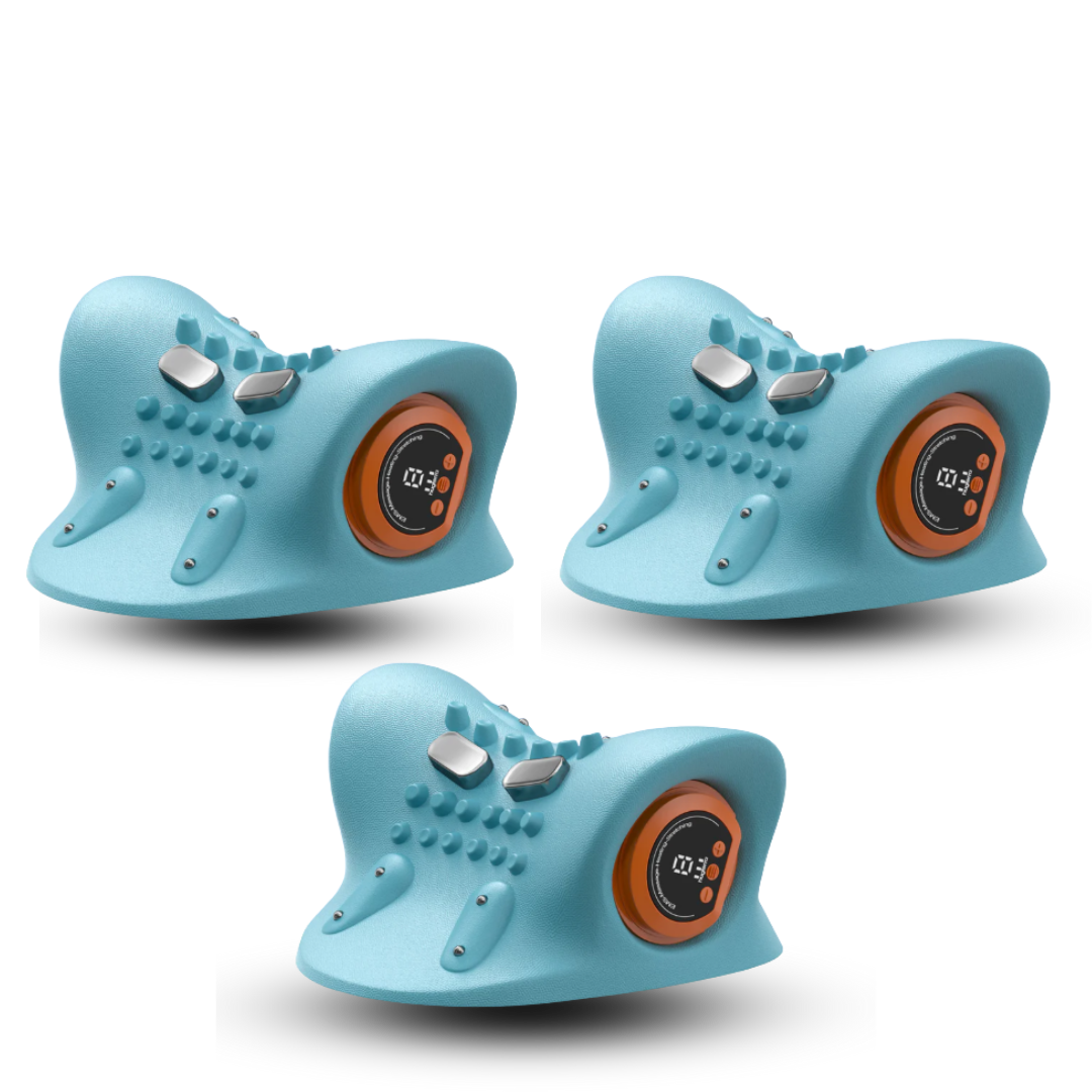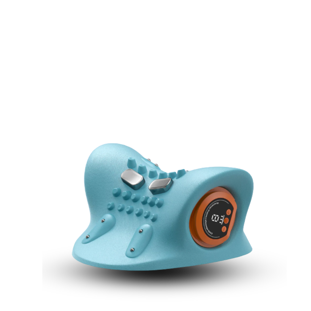 Când stai întins pe el, îți întinde gâtul la unghiul perfect de 26°, care este cel mai eficient pentru decomprimarea coloanei vertebrale. În același timp, micile impulsuri electrice forțează mușchii să se contracte și să acționeze ca niște pompe, împingând în mod natural sângele prin gât și îmbunătățind fluxul sanguin.