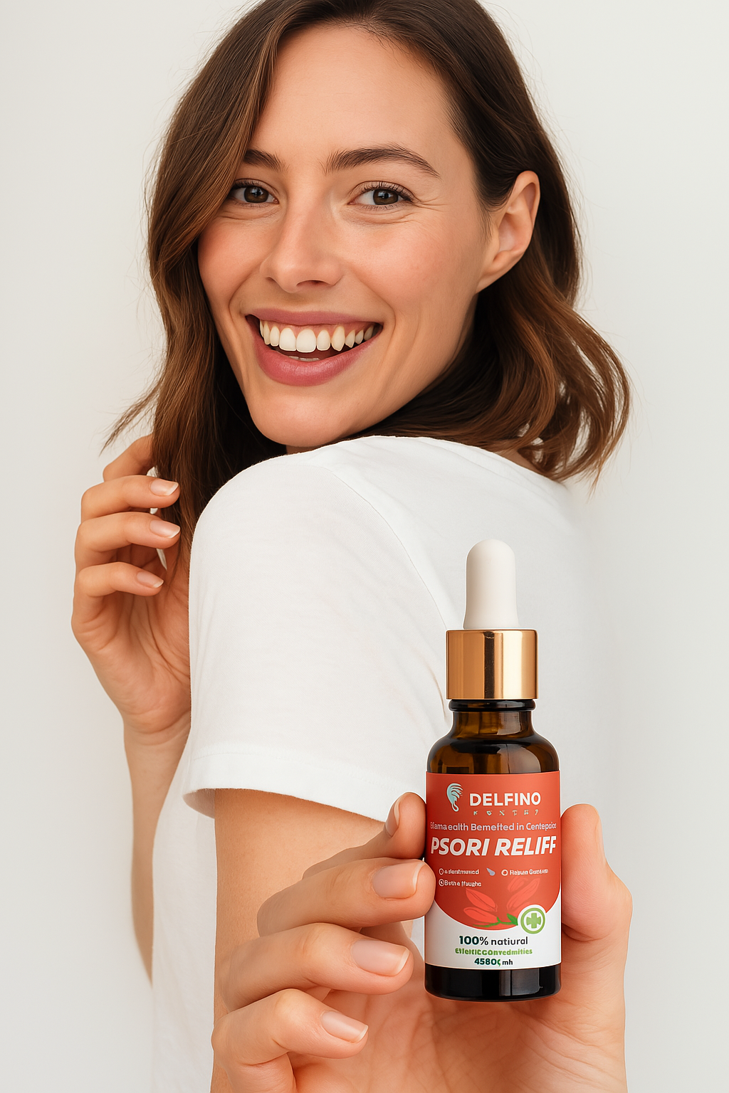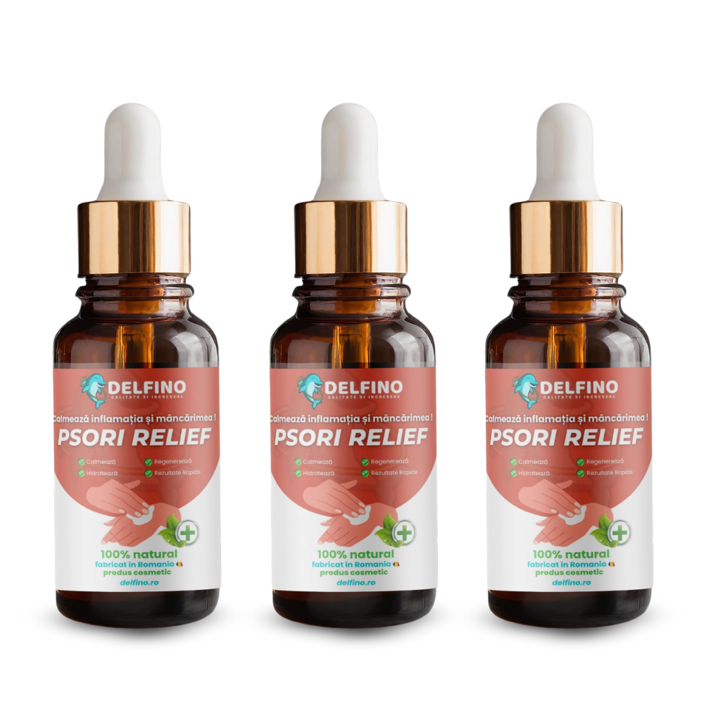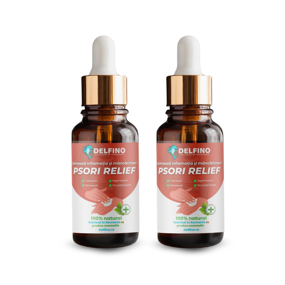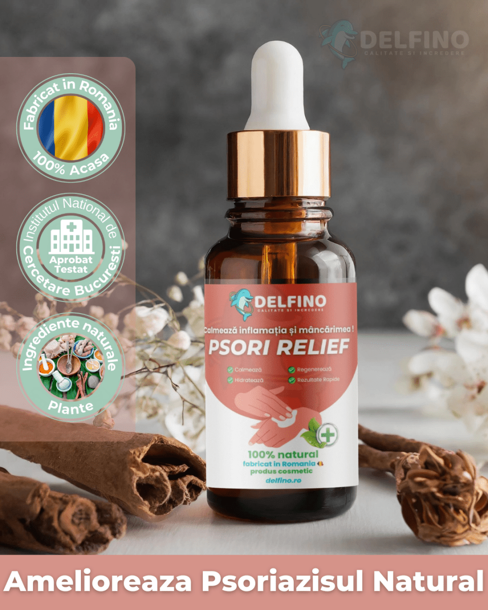 Uleiul Psorizol Delfino® este un tratament natural special creat pentru a calma simptomele psoriazisului, reducând inflamația, iritația și ajutând la regenerarea pielii.